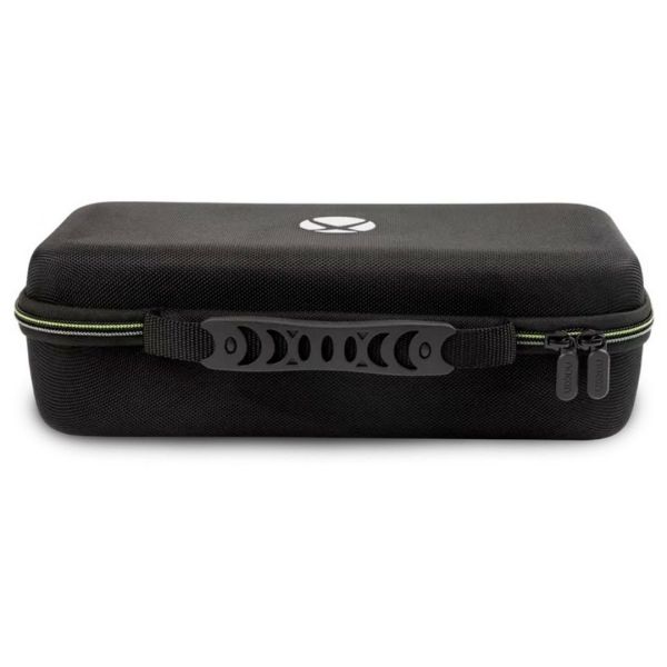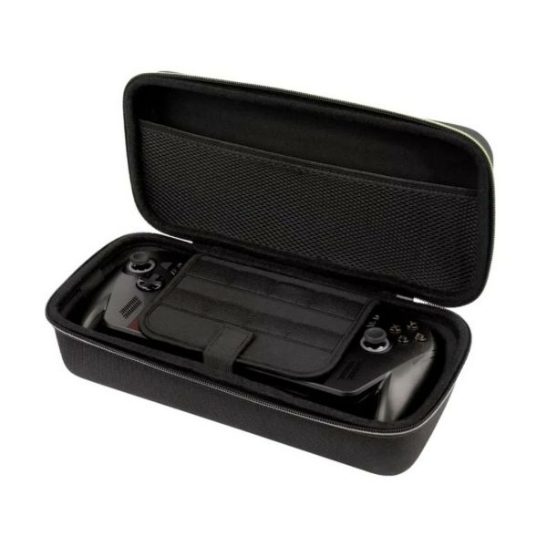Fekete XL hordtáska ROG Xbox Ally és ROG Xbox Ally X készülékekhez, amelyet kifejezetten a konzol és tartozékai tárolására optimalizáltak.