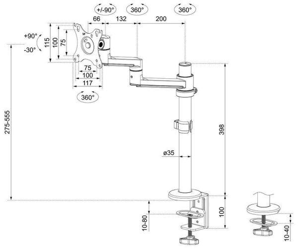 A NEXT Lite rövid T-Rex felső karjának köszönhetően csak minimális mélységre van szükség, ha a tartót fal vagy elválasztó panel közelében helyezik el. Ez lehetővé teszi, hogy a képernyőt távolabb helyezzék el a felhasználótól, ami jobb a szemnek, és több helyet hagy az ergonómikus munkapozícióhoz. Az intelligens belső kábelrendező rendszer biztosítja a kábelek rendezett elvezetését. A DS60-425WH1 olyan képernyőkhöz alkalmas, amelyek megfelelnek a 75x75 vagy 100x100 mm-es VESA furatmintának. A Neomounts különféle opcionális VESA adapterlemezeket kínál eltérő furatmintákhoz. A DS60-425WH1 könnyű felszerelés érdekében Easy-release VESA rendszerrel van felszerelve, és asztali szorítóval és átvezetőgyűrűvel is rendelkezik.