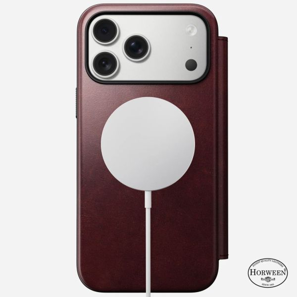 Nomad Modern Leather Folio (Horween) for iPhone 17 Pro Max Burgundy