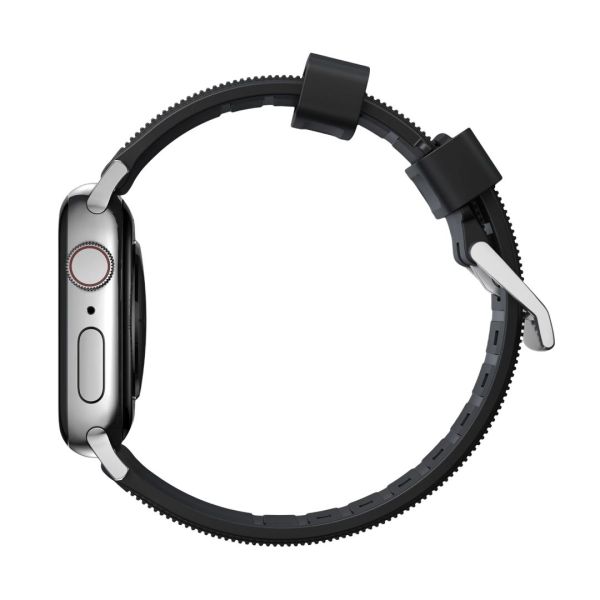 A Nomad aprólékos figyelme a részletekre a Rugged Band kialakításában is megnyilvánul. A bordázott belső rész és a mikroszövetű felület egész napos kényelmet biztosít, míg a kontúrozott végek lehetővé teszik, hogy a szíj természetesen ölelje körül a csuklót. Az öntött hurkok biztonságosan a helyükön tartják a szíjat, kényelmes, szoros illeszkedést biztosítva, amely követi a mozgásodat.