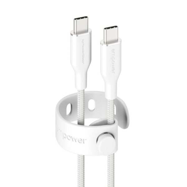 USB kábel, USB-C, USB-C, USB2.0, Male/Male, 2m, White, Töltő és adatkábel, Szövetborítás