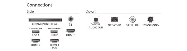 | Csatlakozók | HDMI USB csatlakozó Ethernet Wi-Fi Bluetooth Optikai hang kimenet Fejhallgató csatlakozó CI+ interfész |