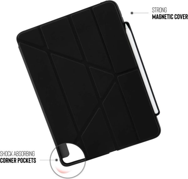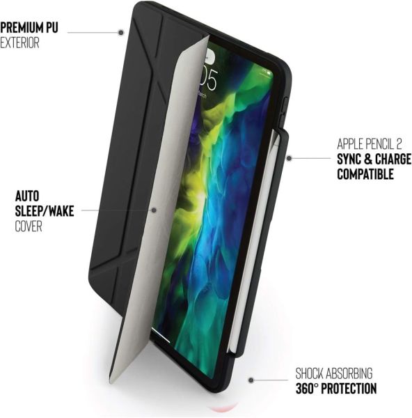 Ugyanazokkal az 5 az 1-ben állványpozíciókkal és funkciókkal rendelkezik, mint az eredeti, legkelendőbb modellünk, ez a tok pedig rendkívül hatékonyan védi a készülékét a ütéselnyelő TPU héjjal, belső légzsákokkal, mágneses elülső fedéllel és Apple Pencil 2 tárolórekesszel, amely nemcsak védi az Apple Pencil 2-t, hanem lehetővé teszi annak szinkronizálását és töltését is a tokban.
