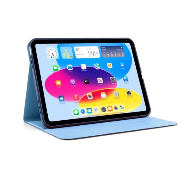 Nyisd ki a biztonságos mágneses fedelet, hogy az iPadet elfordíthasd álló vagy fekvő helyzetbe, így egy 2 az 1-ben iPad állványt kapsz, amely előre-hátra állítható a megfelelő nézési pozíció eléréséhez, akár az ágyban nézed a Netflixet, akár egy kihangosított FaceTime-hívásra van szükséged.