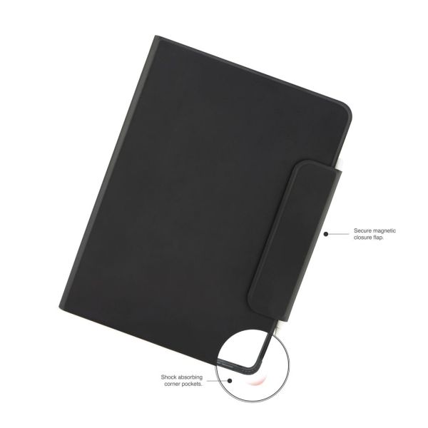 Mivel mi magunk is iPad-felhasználók és -szeretők vagyunk, tudjuk, hogy a részletek számítanak. Ezért úgy terveztük a tokot, hogy az elülső patent használat közben visszahajtható (és a tok hátuljára tapad), így nem takarja a képernyőt. Emellett automatikus alvó-ébrenléti funkciót is beépítettünk, hogy meghosszabbítsuk az akkumulátor élettartamát, és akár 20%-kal hosszabb időt biztosítsunk két töltés között.