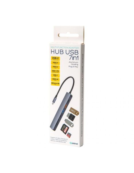 Platinet USB-C Gen2 Media Hub 10GB/S 7in1 HDMI 4K USB-A3.2/ USB-A2.0/ USB-C PD 100W/ USB-C2.0/ SD/ MicroSD Aluminium