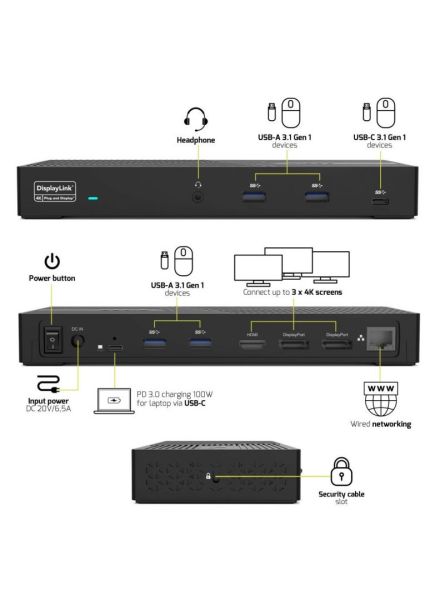 Port Designs Docking Station triple 4K screens for USB-C / USB-A devices Black