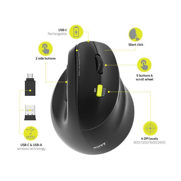 Az USB-C-n keresztül beépített újratölthető akkumulátorral az ERGO egér hosszú üzemidőt biztosít. Egyszerű és gyors töltés a folyamatos, megszakítás nélküli használathoz.