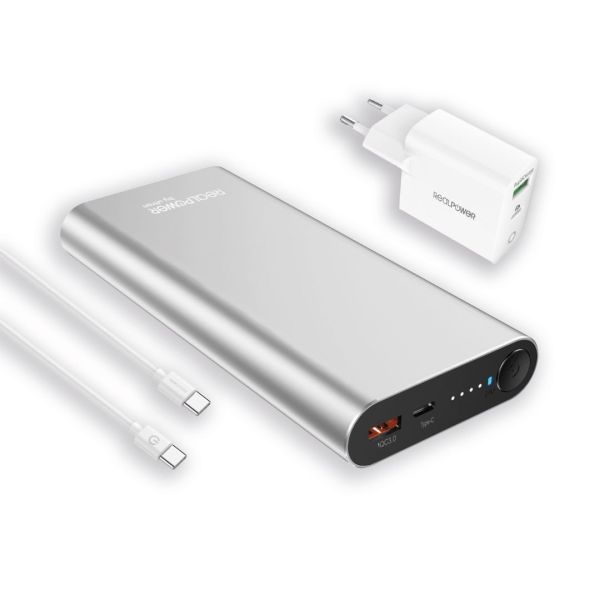 A RealPower PB-20000PD Pro PowerPack segítségével bármikor és bárhol gyorsan és egyszerűen feltöltheti mobil eszközeit, például notebookjait vagy okostelefonjait. A powerbank útközben is árammal látja el notebookját. A powerbank és a notebookok a mellékelt 65 W-os töltővel a legújabb GaN technológia segítségével villámgyorsan feltölthetők.