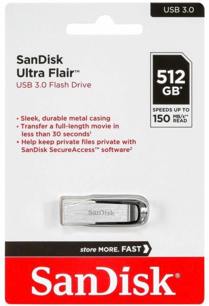 Sandisk 512GB Ultra Flair USB3.0 Silver