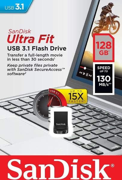 SanDisk Pendrive - 128GB Cruzer Fit Ultra (130 MB/s, USB 3.1, fekete)