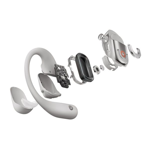 A rugalmas, nikkel-titán ötvözetből készült fülkampó igazodik a fül kontúrjához, így biztosítva a stabil és kényelmes viseletet edzés közben és a mindennapokban egyaránt.