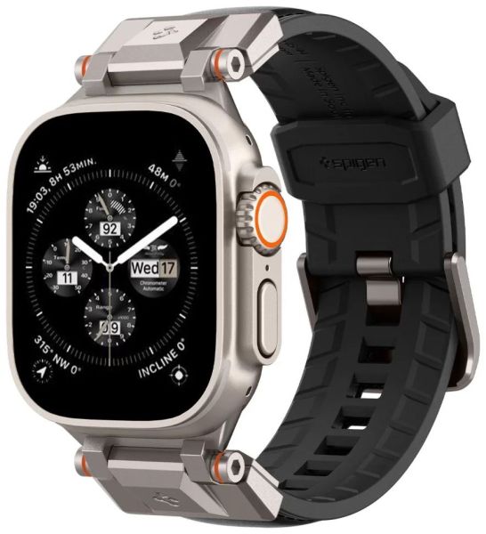 Fedezze fel a stílus és a tartósság rendkívüli kombinációját a Spigen DuraPro PU pántjával. Ez a szíj a legmagasabb minőséget szem előtt tartva készült, egyedi, robusztus kialakítással és merész fém ékezetekkel kombinálva. A színben illeszkedő fémcsatlakozók tökéletesen illeszkednek az Apple Watch Ultra titánium tokjához, harmonikus és elegáns egészet alkotva.