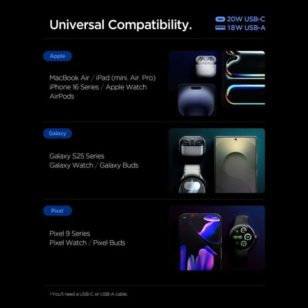 A kompakt kialakításnak köszönhetően a Spigen EE202EU könnyen hordozható - ideális otthonra, irodába vagy utazáshoz. Praktikus és megbízható megoldás azoknak, akiknek gyors, intelligens és biztonságos áramforrásra van szükségük készülékeik számára.