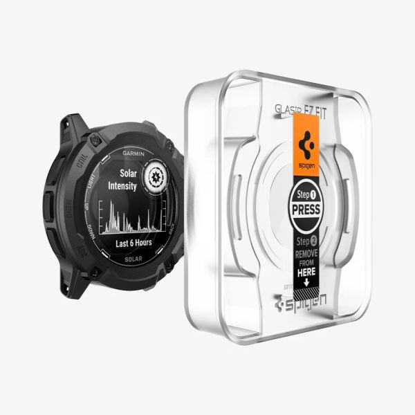 Kevesebb idő, garantált igazítás. A legújabb Glas.tR EZ Fit innovatív tálcával rendelkezik, amelyet úgy terveztek, hogy megszüntesse a legnagyobb igazítás eléréséhez szükséges időveszteséget. Egyszerűen helyezze a tálcát az órára, nyomja meg a közepét, és figyelje, ahogy az üveg a helyére tapad. Védje a képernyőt a 9H keménységű Glas.tR EZ Fit a legújabb és legegyszerűbb technológiával.