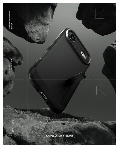 A Spigen Tough Armor T MagFit új ütésvédő habbal rendelkezik, amely fokozott védelmet nyújt az ütések és ütések ellen. A három különböző rétegből készült tok optimális védelmet nyújt az Apple iPhone Air készüléknek vékony kialakításban. A beépített mágnes lehetővé teszi a MagSafe és Qi2 tartozékok mágneses rögzítését a tok hátoldalára. A kihajtható állványnak köszönhetően kihangosítható videohívásokat kezdeményezhetsz, vagy filmet vagy sorozatot nézhetsz.