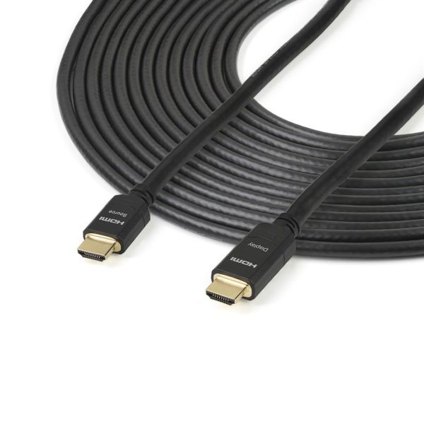 A 24 AWG rézhuzalból, aranyozott csatlakozókból, valamint Al-Mylar fóliát és rézfonatot használó kiváló EMI árnyékolással készült kábel minimalizálja a jelveszteséget és az interferenciát. A kábel beépített erősítő áramköre aktívan erősíti a HDMI jelet, külső tápellátás nélkül. Támogatja a hosszabb csatlakozásokat, mint a hagyományos HDMI.