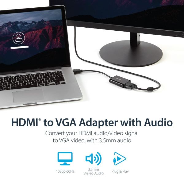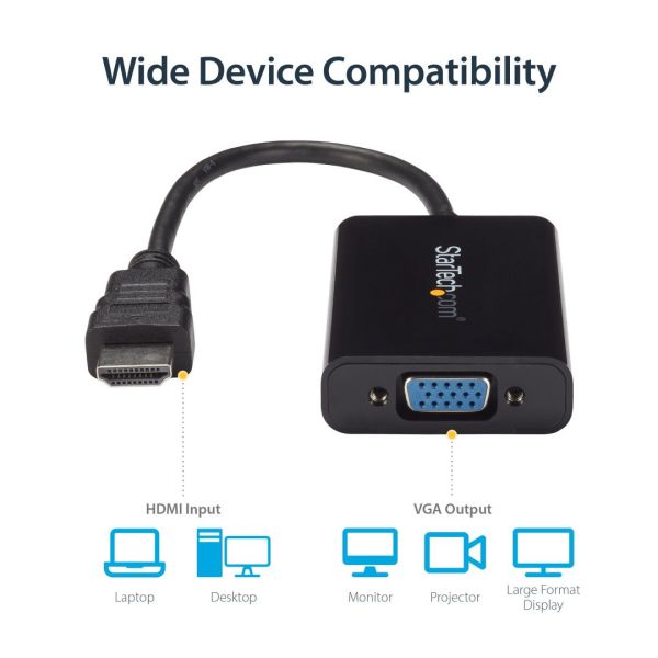 A HD2VGAA2 HDMI®-VGA adapterkábel lehetővé teszi egy HDMI kimeneti eszköz, például egy laptop videokimenete vagy digitális médiakiterjesztő csatlakoztatását egy VGA megjelenítő eszközhöz (monitor, projektor) azáltal, hogy a kimeneti eszköz HDMI videojelét VGA kimenetté és külön 2 csatornás analóg hanggá alakítja. A HDMI-VGA adaptert a felhasználó által létrehozott tartalmak, például prezentációk, dokumentumok és munkalapok VGA projektoron vagy monitoron történő megjelenítésére tervezték. Az adapter a számítógép asztali felületét is kibővítheti, hogy megduplázza a munkaterületet és növelje a termelékenységet.
