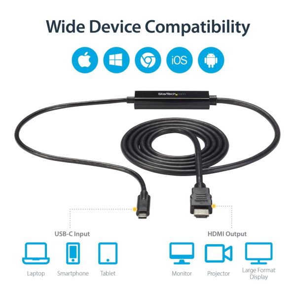 Ez az USB-C™-HDMI® adapterkábel kényelmes megoldást kínál DisplayPort over USB Type-C™ eszközének HDMI-monitorhoz, televízióhoz vagy projektorhoz való közvetlen csatlakoztatásához. Az adapter akár 2 m-es csatlakozási távolságot is támogat, és olyan USB-C eszközökkel működik, amelyek támogatják a DP alt módot, például a MacBook, a ChromeBook Pixel™ és a Dell™ XPS™ 15 és 13 modellekkel. A Thunderbolt™ 3 portokkal is kompatibilis.