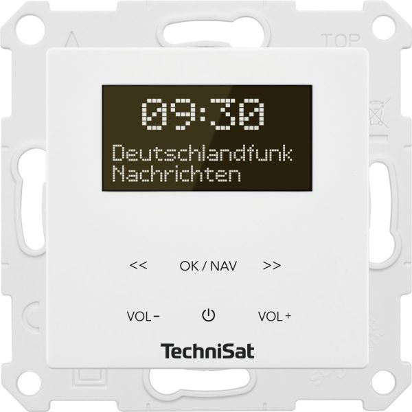 A TechniSat DIGITRADIO UP 55 egy kompakt, süllyesztett rádió, amely rugalmasan beépíthető, például dupla süllyesztett aljzatba. A készülék két betétből áll: egy süllyesztett rádió OLED kijelzővel és érintőképernyős kezelőpanellel, valamint egy süllyesztett hangszóró. Mindkét betét mérete 55 x 55 mm, így gyakorlatilag minden, a kereskedelemben kapható, neves kapcsolóprogram-gyártók által gyártott beépítőkerettel kombinálható. Kívánság szerint a rádiós részhez egy második hangszóró is csatlakoztatható. A rádió a DAB+ és az FM csatornákon keresztül fogadja az adásokat, a zenei streaminget pedig Bluetooth-on keresztül, így a hangszóró kiváló hangminőséget produkál. Ideális lejátszási listákhoz és okostelefonon keresztül történő zenelejátszáshoz. DAB+ és FM állomásmemóriákkal rendelkezik, amelyek mindegyike 20 állomás befogadására alkalmas. Az ébresztési funkcióval és alvásidőzítővel ellátott időkijelző a DIGITRADIO UP 55-öt helytakarékos rádiós ébresztőként is vonzóvá teszi. Ezt a készüléket kizárólag süllyesztett beépítésre szánjuk. A hálózati áramhoz való csatlakoztatást csak szakképzett villanyszerelők végezhetik. Felhívjuk figyelmét, hogy a készülék nem tartalmaz szerelőkeretet, ezért továbbra is a meglévő szerelőkeretet kell használnia.