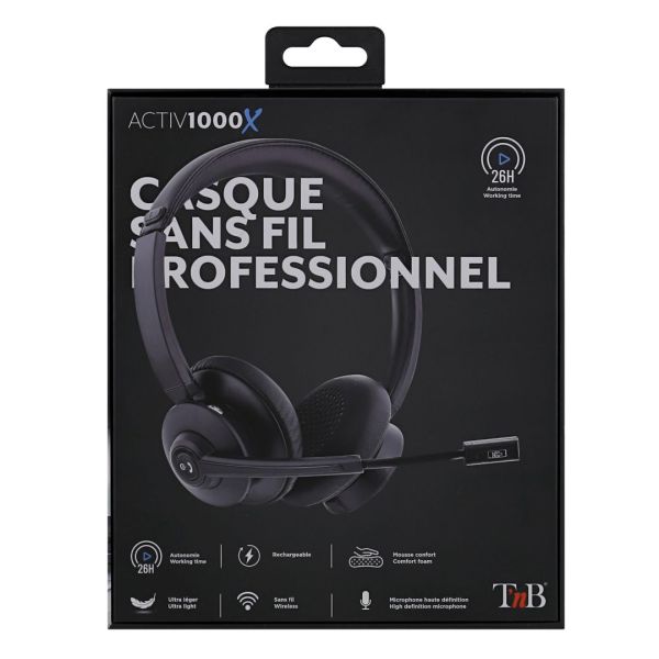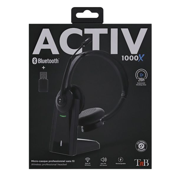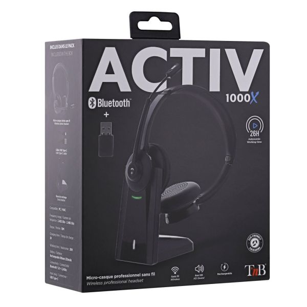 TnB Activ 1000X Bluetooth & Wireless Headset + Dongle Charging Base Black
