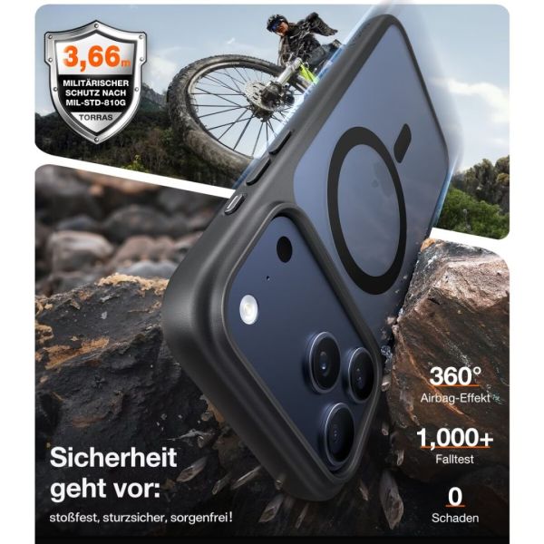 Fedezze fel a védelem és a funkcionalitás tökéletes ötvözetét a TORRAS Guardian MagSafe védőtok segítségével, amely az iPhone 17 Pro készülékhez készült, stílusos fekete színben. Ez a kiváló minőségű tok nem csupán hatékony védelmet nyújt, hanem zökkenőmentes MagSafe-kompatibilitásával is lenyűgöz, amely lehetővé teszi a kiegészítők egyszerű használatát.