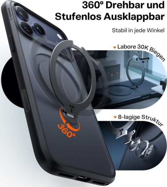A tok zökkenőmentes MagSafe-kompatibilitásával és továbbfejlesztett mágneses technológiájával nyűgözi le a felhasználókat, amely lehetővé teszi a kiegészítők biztonságos rögzítését. Az integrált 360° Airbag technológiának köszönhetően okostelefonja minden irányból védve van az ütésektől és a rázkódásoktól. Egy másik kiemelkedő jellemzője a praktikus 360°-os állványgyűrű: rugalmas nézőszögeket biztosít videók, videohívások vagy produktív munkavégzéshez álló és fekvő módban egyaránt – ideális azok számára, akik sokoldalúan szeretnék használni okostelefonjukat.