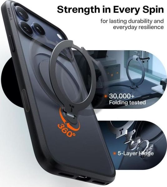 Fedezze fel a védelem és a funkcionalitás tökéletes ötvözetét az Ostand 360° Spin védőtok segítségével, amelyet kifejezetten az iPhone 17 Pro számára terveztek. Ez az elegáns fekete tok nem csupán kiváló védelmet nyújt, hanem számos innovatív funkcióval is rendelkezik, amelyek megkönnyítik a mindennapi életet.