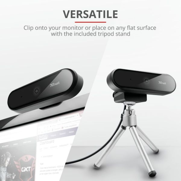 A plug & play funkciónak köszönhetően a videohívás még soha nem volt ilyen egyszerű; Miután az USB segítségével csatlakozott a számítógépéhez vagy laptopjához, azonnal elkezdheti a hívást. A Trust Tyro Full HD webkamera kompatibilis a Zoom, a Teams, a Skype és más szoftverekkel. A webkamera könnyen rögzíthető a monitoron, jól illeszkedik az íróasztalhoz, és állvánnyal is rendelkezik, így ez az eszköz elég sokoldalú ahhoz, hogy megfeleljen bármilyen irodai vagy otthoni irodai használatnak