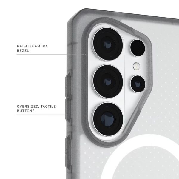 A Dot sorozat egy átlátszatlan, könnyű tok, amely kivételes katonai szintű ütésvédelmet nyújt, és amelyben az UAG is megbízik és kedvel. Átlátszó PC és TPU anyagokból készült, strapabíró, öntött tok, amely fejlett, ütésálló maggal és emelt, védő képernyőkerettel rendelkezik, hogy megvédje készülékét a leejtésektől és a karcolásoktól. Beépített mágneses modulunk biztonságosan rögzíti a készüléket, ha vezeték nélküli töltőt vagy más mágneses kiegészítőket használ. Fokozott textúrájú, csúszásgátló tapadással rendelkezik, amely biztos tartást garantál, csökkentve a véletlen leejtés esélyét.