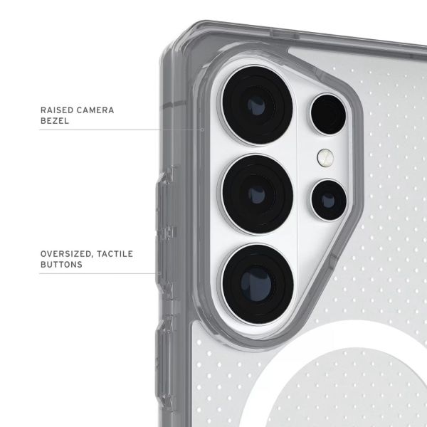 A Dot sorozat egy átlátszatlan, könnyű tok, amely kivételes katonai szintű ütésvédelmet nyújt, és amelyben az UAG is megbízik és kedvel. Átlátszó PC és TPU anyagokból készült, strapabíró, öntött tok, amely fejlett, ütésálló maggal és emelt, védő képernyőkerettel rendelkezik, hogy megvédje készülékét a leejtésektől és a karcolásoktól. Beépített mágneses modulunk biztonságosan rögzíti a készüléket, ha vezeték nélküli töltőt vagy más mágneses kiegészítőket használ. Fokozott textúrájú, csúszásgátló tapadással rendelkezik, amely biztos tartást garantál, csökkentve a véletlen leejtés esélyét.