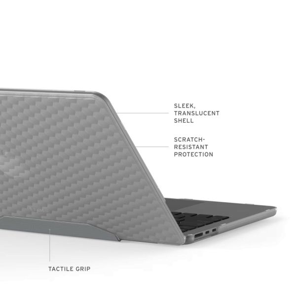 Az Essential Armor tok könnyű, egy darabból álló, csuklós szerkezettel rendelkezik, amely prémium, ütésálló anyagokkal védi készülékét. Az áttetsző héj kiemeli laptopja dizájnját, míg a jellegzetes kalapált hatszög mintázat ipari jelleget kölcsönöz neki. Tapintható csuklós fedéllel, csúszásgátló talpakkal és az összes porthoz való könnyű hozzáféréssel ez a tok biztosítja a teljesítményt és a védelmet.