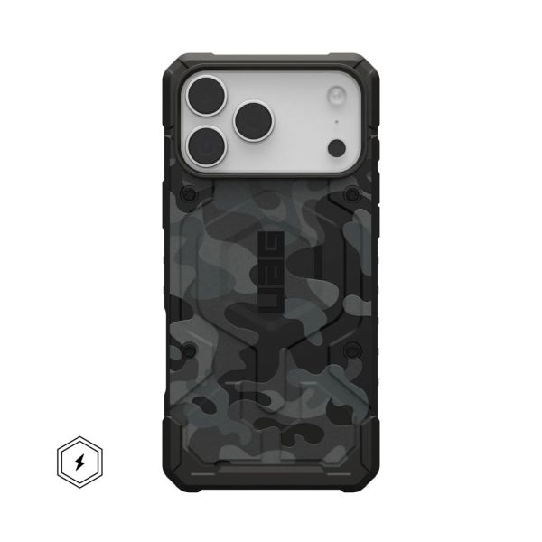 A Pathfinder SE tok ideális választás azok számára, akik masszív, kalandos védelmet keresnek, teljes MagSafe kompatibilitással és Geo Camo kivitelben. Ez az iPhone 17 Pro Max tok egy ultrakönnyű páncélozott héjat kombinál ütésálló kerettel és hexamintás maggal, így kiváló esés- és ütésvédelmet nyújt. A megemelt képernyő körbevétele megvédi a kijelzőt a véletlen leeséstől, míg a strapabíró TPU-ütközők extra sarokvédelmet biztosítanak. A nagy teljesítményű beépített mágneses modulnak köszönhetően készüléked biztonságosan rögzül a helyén, így zökkenőmentes MagSafe töltési kompatibilitást biztosít, és támogatja az Apple Payt.
