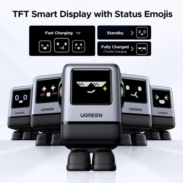 - Groovy Robot Design: TFT-képernyő LED-ről frissített TFT-képernyő, így a különböző töltési állapotoknak megfelelően érdekesebb kifejezéseket mutat. A lábai mágnesesek, amelyek a laptopokhoz ragaszthatók anélkül, hogy elveszítenék( Megjegyzés: A kifejezés csak akkor jelenik meg, ha a készülék be van kapcsolva.).