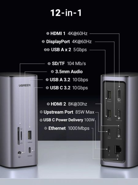 UGREEN Revodok Pro 312 Triple Display 12-in-1 USB C 8K Universal Docking Station Silver