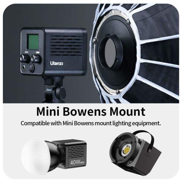 - Mini Bowens csatlakozás a kompakt LED-lámpákkal való kompatibilitásért