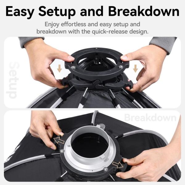 Ez a softbox különösen hasznos portré- és termékfotózáshoz, valamint videókészítéshez, ahol fontos a minőségi fényeloszlás.