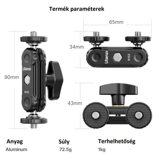Ulanzi R102 kétfejű bilincs, két oldalt szabványos 1/4-es kialakítással!