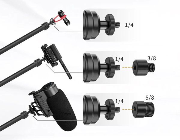 Ideális választás mikrofonokhoz, kamerákhoz, lámpákhoz. Az LS08 asztali kamera állvány rendelkezik 1/4"-os és 3/8"-os csavarral és 1/4"-os és 5/8"-os csavarkonverterrel. A csavarkonverternek köszönhetően a legtöbb kiegészítő csatlakoztatható az állványhoz!
