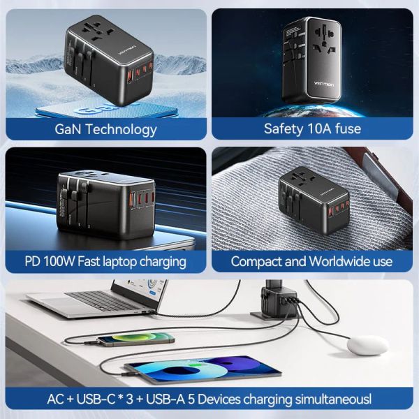 Vention 4-Port USB (C+C+A+A) GaN Universal Travel Adapter Black