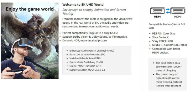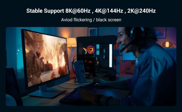 A kábel támogatja a 8K felbontást és a 60 Hz-es képfrissítési frekvenciát, így a megjelenített képek kivételesen egyenletesek és részletgazdagok. A termék támogatja a Dynamic HDR-t is, ami élénk és természetes színeket biztosít. Emellett a 48 Gbps sávszélességnek, a QFT technológiának és az ALLM módnak köszönhetően kényelmesen játszhatsz dinamikus játékokkal anélkül, hogy a jelátviteli problémáktól kellene tartanod. A VRR funkcióra is érdemes odafigyelni, amely segít elkerülni a késleltetéseket és a képernyőszakadást. A kábel a video- és hangjelek egyidejű átvitelét is lehetővé teszi, az eARC technológia pedig tiszta és tiszta hangzást biztosít.