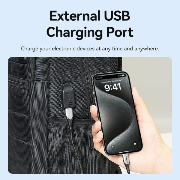 Csatlakoztathatóság útközben. A külső USB-port megkönnyíti az olyan eszközök, mint a laptopok, táblagépek vagy okostelefonok töltését, optimalizálva az autonómiát a hosszú utazások vagy az egyetemi, coworking és technológiai rendezvényeken töltött napok során.