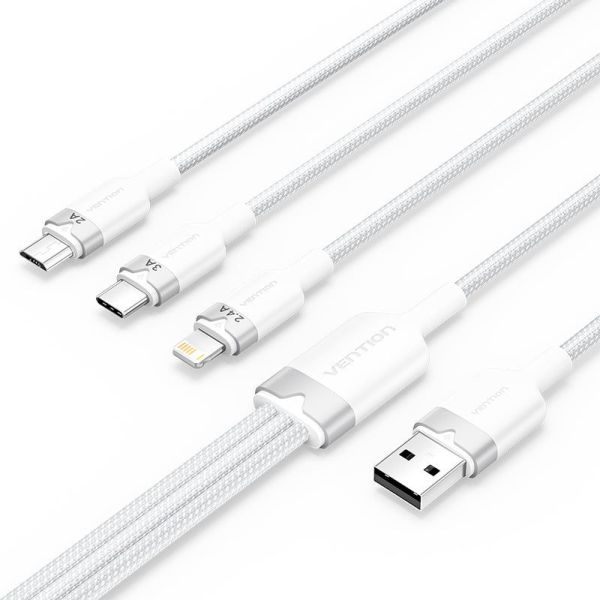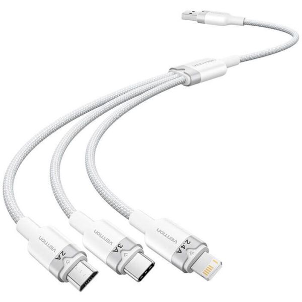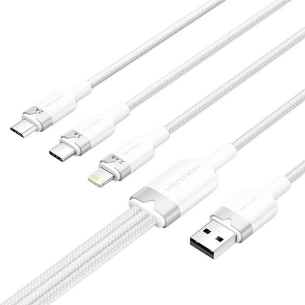 Vention USB 2.0 A Male to 3-in-1 USB-C & Lightning & Micro-B Male 3A Cable 1,5m White