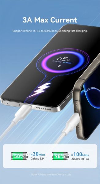 A kábel 3A maximális áramerősségével gyors töltést biztosít, jelentősen csökkentve az okostelefon vagy más eszközök töltéséhez szükséges időt. Emellett támogatja a 480 Mbps sebességű adatátvitelt, így pillanatok alatt átvihetsz olyan fájlokat, mint a fényképek, dokumentumok vagy videók.