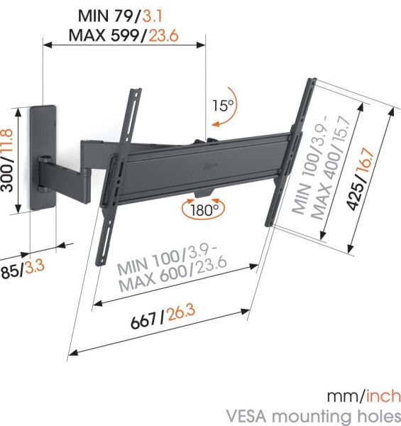 A QUICK Full-Motion+ TV-fali tartó akár 180°-kal is elforgatható és 15°-kal dönthető. Ez azt jelenti, hogy gyakorlatilag a szoba bármely pontjáról élvezheti tévéjét. Ráadásul ez a TV-fali tartó kevesebb mint 30 perc alatt telepíthető. A QUICK Full-Motion+ TV-fali tartó 40 és 77 hüvelyk közötti, legfeljebb 35 kg súlyú TV-khez alkalmas.
